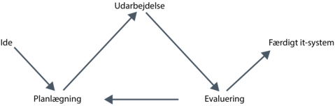 Den overordnede arbejdsmetode i programmering er trinvis forbedring [1], hvor man iterativt planlægger, udarbejder og evaluerer sit program som i den arbejdsproces der beskrives til informatikfaget [2], se Figur 1.